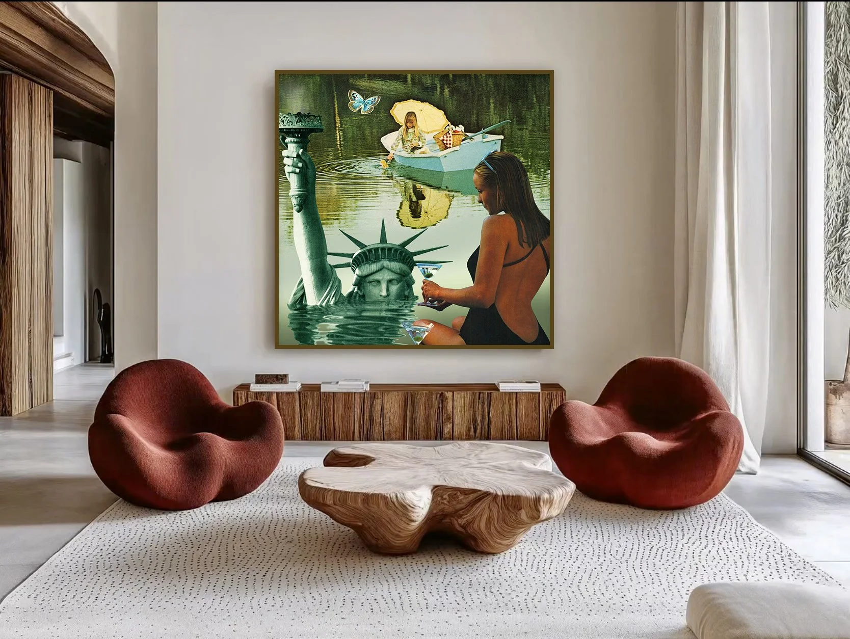 All Prints Categories: All Prints Queer Collisions Social Unrest Art Death Religious Satire Retro Feminism Social Commentary Art Environmental Concept Art Anatomical Muscle Cars Apocalyptic All Prints | Queer | Collisions | Social Unrest Art | Death | Religious Satire | Retro Feminism | Social Commentary Art | Environmental Concept Art | Anatomical | Muscle Cars | Apocalyptic | “My Body Is Your Communion: Eat From Me” | Postwar Feminine Identity Art | by Joan Seed “Muscle Car Garden Chaos” | Retro Automobile Collage Art | by Joan Seed “Holding Hands with A.I. on the Deathbed” | Post-Human Connection Art Print | by Joan Seed “Crisco Fascinator” | 1960’s Surrealist Retro Masculinity | by Joan Seed “Sludge Land” | Retro Domestic Figures in a Toxic-Waste Climate Disaster | by Joan Seed “What’s Cooking?” | A Retro Scene of Nuclear Domesticity Gone Awry Collage Artwork | by Joan Seed “Car Cemetery” | Vintage Muscle Car Inspired Limited Edition Artwork | by Joan Seed “Time Slip off the West Coast” | Environmental Collapse Fine Art Limited Edition Prints | by Joan Seed “If Walls Could Talk” | 1960s Retro In-the-Closet Gay Art Collage | by Joan Seed “Jesus on the Beach” | A Retro Religious Satire for the End Times | by Joan Seed “Cold Head” | A Vintage Analog Surrealist Collage on Mechanical Emotion | by Joan Seed “The Aftermath” | Retro-Futurist Disaster Fine Art Print | by Joan Seed “Lola at the Copacabana” | A Retro Feminist Noir with Muscle Cars and Menace | by Joan Seed “How I Behave in an Emergency” | A Post-Apocalyptic Domestic Scene Gone Wrong | by Joan Seed “Wind-Up Toy” | Retro-Futurism Collage, Limited Edition Fine Art Print | by Joan Seed “Changing Tides” | A Surreal Pop Art Reflection on Rising Seas | by Joan Seed “Adam and Eve Love Triangle” | A Retro Religious Satire of Power, Control, and Public Disorder | by Joan Seed “The Ugly Redheaded Stepchild” | Anti-Authoritarian Outsider Collage for the Disillusioned | by Joan Seed “Doting Mother” | Retro Feminist Surrealist Fine Art Collage | by Joan Seed “Hamburger Head” | Retro Feminist Surrealist Collage Art | by Joan Seed “Broadcast Body” | Limited Edition Feminist Retro-Futurist Collage Prints | by Joan Seed “Cocktail Casualty” | A Provocative Retro-Futurist Surrealist Collage | by Joan Seed “Sally Sniper” | A Retro Feminist Noir Collage in Limited Edition Fine Art Print | by Joan Seed “Crisco Dreams” | Feminist Retro-Surrealist Collage Art | by Joan Seed “Family Drama” | A Vintage Surrealist Reflection on Addiction and Domestic Turmoil | by Joan Seed “Oppressor” | Surreal Political Collage on Power, Control, and Resistance | by Joan Seed “Queen of the Desert” | Limited Edition Retro Pop Art with Ironic Cinematic Flair | by Joan Seed “Mob Funeral” | A Surreal Americana Meditation on Mortality and Myth | by Joan Seed “Sleeping at the Wheel” | 1950s Retro-Feminist Vintage Car Collage | by Joan Seed “Airplane Collision” | A Retro Surrealist Meditation on Disaster Culture | by Joan Seed “Staycation at the End of the World” | Retro Apocalyptic Satire in Fine Art Collage | by Joan Seed “Horsepower of the Gods” | Retro Muscle Car Pop Art and a Critique of Masculinity | by Joan Seed “The Goat Show: Domestic Broadcasting for the End Times” | Retro Surrealist Fine Art Collage | by Joan Seed “Niagara Falls Vacation” | A Postmodern Catholic Satire in Surreal Collage | by Joan Seed “Warming Filter” | A Surreal Pop Art Meditation on Climate Change and Image Culture | by Joan Seed “Road Trip to Ruin” | A Vintage Muscle Car Surrealist Meditation on Nostalgia and Collapse | by Joan Seed “Overthinker” | A Retro Feminist Surrealist Collage from the 1950s Imagination | by Joan Seed “Pretendians” | Performative Identity Art – Protest Art with Humor | by Joan Seed “Crash and Burn – The Fire Next Time (Or Thursday Afternoon in America)” | Political Pop Surrealist Collage | by Joan Seed “Ride the Snake” | A Conceptual Surrealist Collage in the Language of Myth and Desire | by Joan Seed “Under Cover” | A Surreal Commentary on Surveillance, Spectacle, and State Narratives | by Joan Seed “Cluster B Motel” | A Psychological Roadside Attraction for the Emotionally Damaged | by Joan Seed “Anatomical Garden” | Surreal Botanical Collage on the Body as Landscape | by Joan Seed “Collision of Blossoms” | A Vintage Muscle Car Surrealist Meditation on Beauty and Ruin | by Joan Seed
